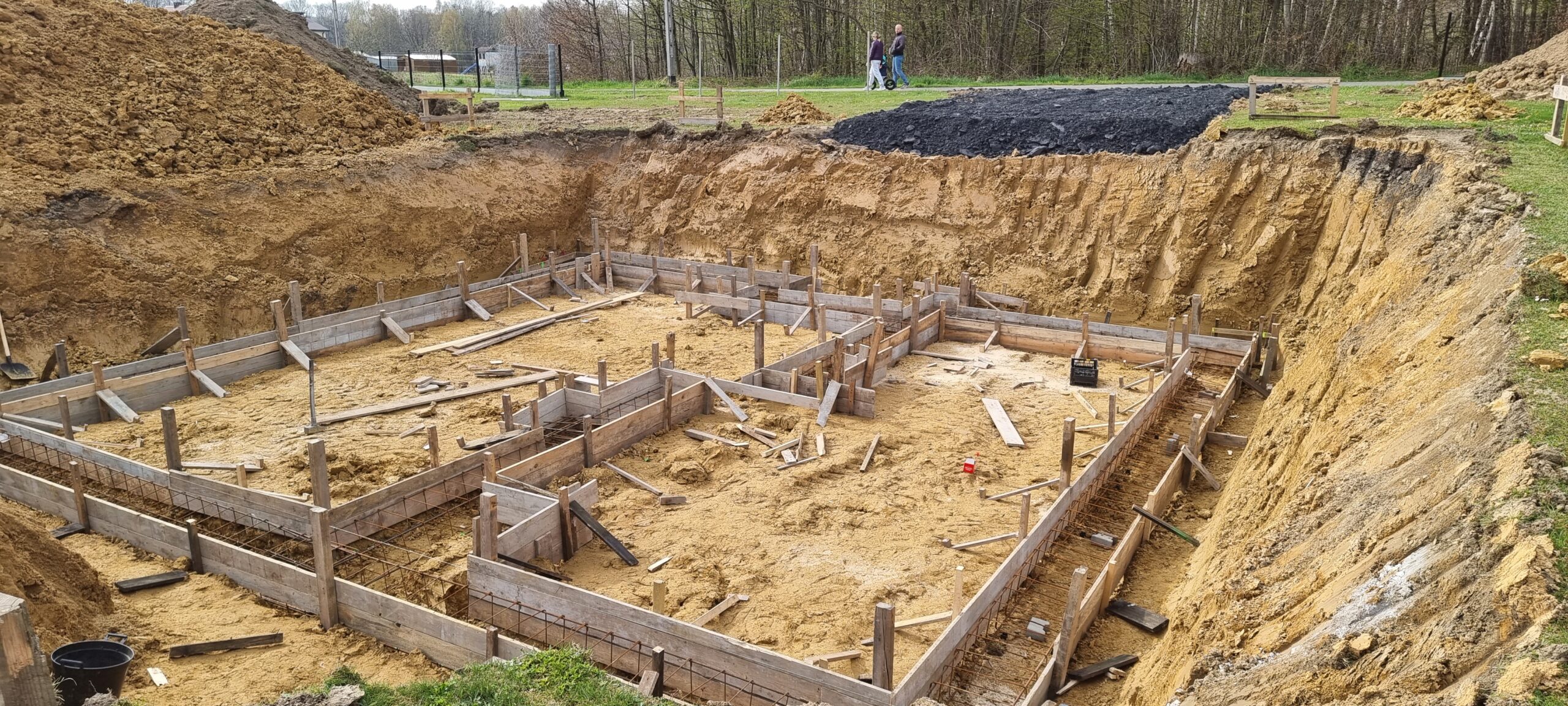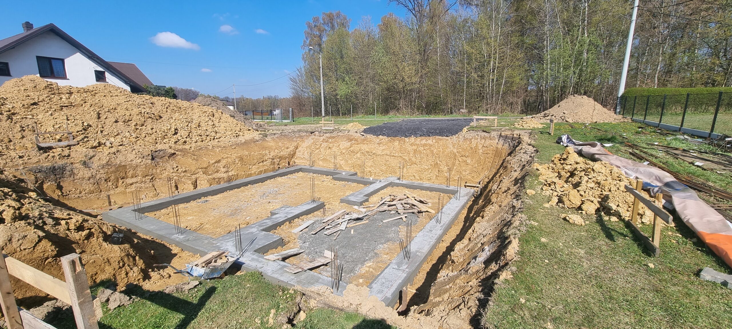 - Wykop pod płytę fundamentową – Wykonujemy wykop na odpowiednią głębokość, biorąc pod uwagę wymagania geotechniczne i projektowe. Dno wykopu jest starannie oczyszczane i wyrównywane.